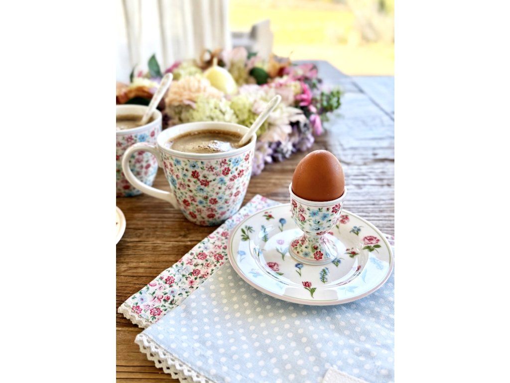 Někdy je největší krása ukrytá v detailech. Kalíšek na vajíčko Louisa sází na nenucenost – jeho drobný květinový vzor v pastelových tónech působí neuvěřitelně svěže a harmonicky. Je to přesně ten doplněk, který zútulní váš prostřený stůl, aniž by ho zahltil.